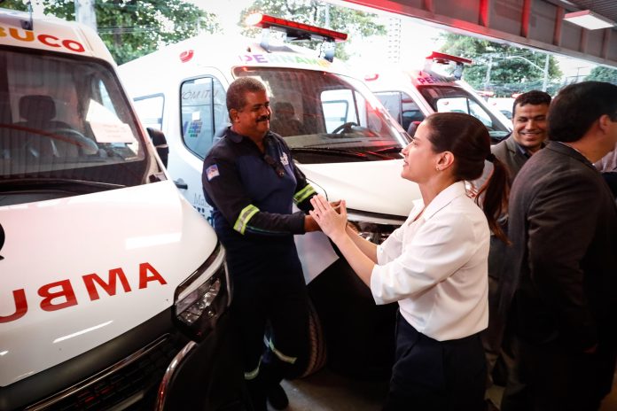 Durante o evento, a Governadora Raquel Lyra também entregou 87 camas hospitalares elétricas para crianças com microcefalia e 20 novas ambulâncias de suporte avançado