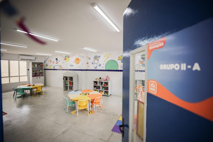 A creche escola passa a contar com 15 turmas, distribuídas entre o Berçário e os Grupos I ao V, fortalecendo o atendimento à primeira infância e garantindo mais acesso das crianças à rede municipal de ensino. As obras incluíram a construção de um novo bloco com quatro salas de aula, quatro banheiros infantis integrados, ampliação dos solários e melhorias internas na unidade, como a implantação de piso tátil, promovendo mais acessibilidade, conforto e segurança para estudantes e profissionais da educação.