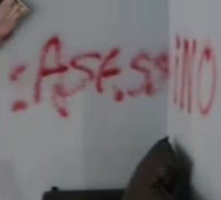 Imagens gravadas no local mostram o quadro de energia quebrado, móveis revirados, uma televisão com a tela destruída e as mensagens feitas com tinta vermelha.
