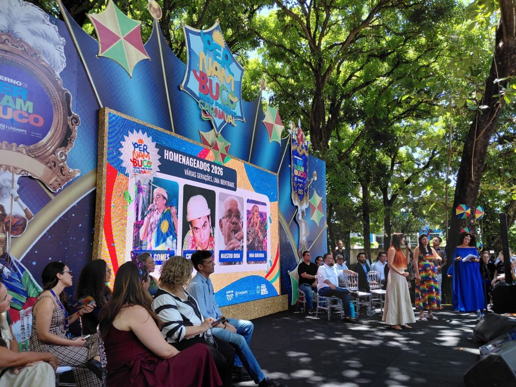 O Governo de Pernambuco divulgou, nesta quarta-feira (4), a programação cultural e as ações realizadas pelo estado no Carnaval 2026, que terá como homenageados os cantores João Gomes, Chico Science e Nena Queiroga, e o Maestro Duda. O investimento na festa é de R$ 77,6 milhões, com polos do governo estadual em Recife, Olinda, Bezerros, Pesqueira, Triunfo, Paudalho, Nazaré da Mata, Goiana e Vitória de Santo Antão – além do apoio a mais de 100 municípios.