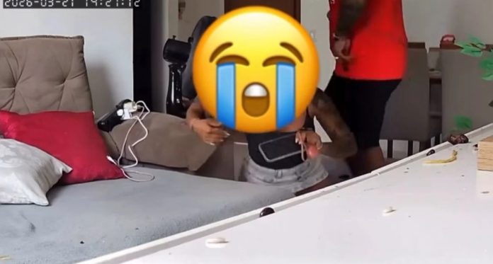 A vítima registrou parte da agressão em vídeo e divulgou as imagens em suas redes sociais, onde o homem aparece limpando a sujeira após arremessar uma marmita contra a parede e, em seguida, empurrando Taylane, que bate em um ventilador e cai no chão ao tentar intervir na situação.