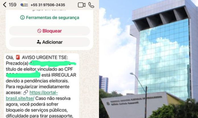 Na mensagem, o usuário é direcionado a clicar em um link com o nome “portal-brasil/tse”, para “regular” a situação. Os golpistas ainda afirmam que, caso a situação não seja resolvida com urgência, a pessoa pode sofrer bloqueio em servios públicos e restrições bancárias, além de dificuldades para emitir documentos e impedimento para votar nas próximas eleições.
