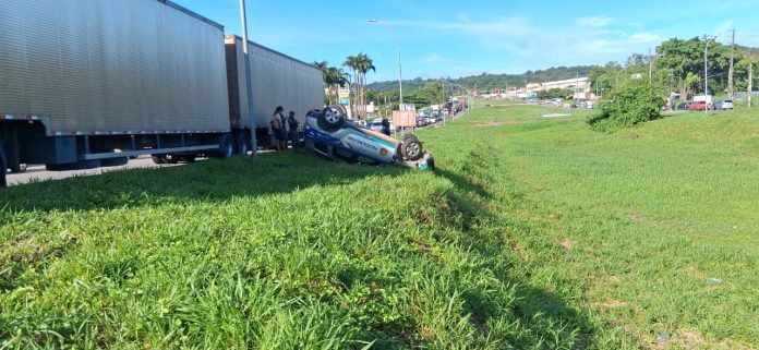 Viatura da PM capota após colisão com caminhão na BR-101, no Recife